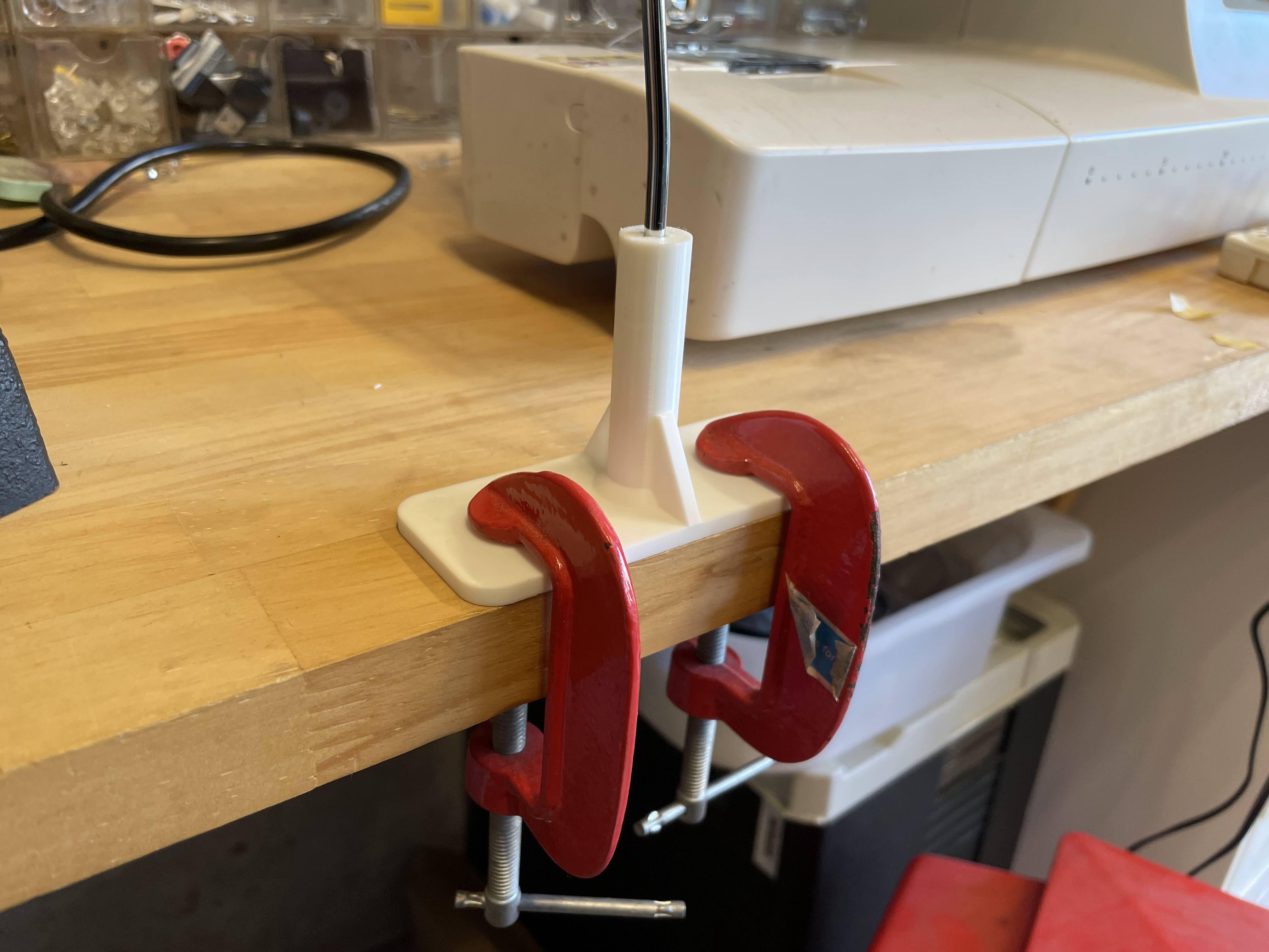 ・クランプ固定の仕方は画像2枚目をご覧ください。100均のC型クランプや編み機のクランプが利用できます。固定したい台の厚さに合わせてご用意ください。強く締めすぎると破損する恐れがあるためご注意ください。