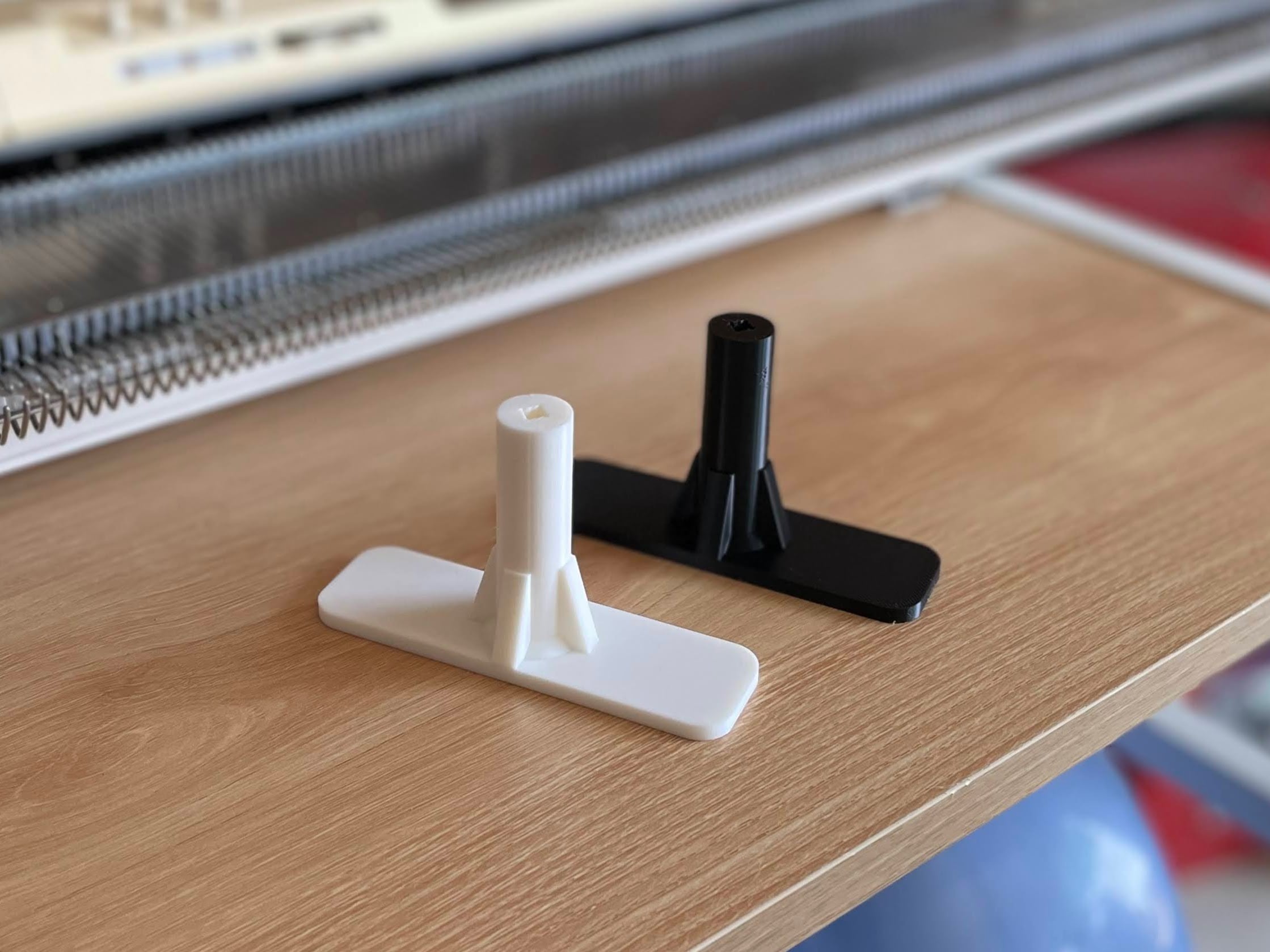 ・家庭用編み機のテンション棒を机等に固定するための台です。テンション棒の差し込み方向は90度回転でき、正面と横の2方向で利用できます。
